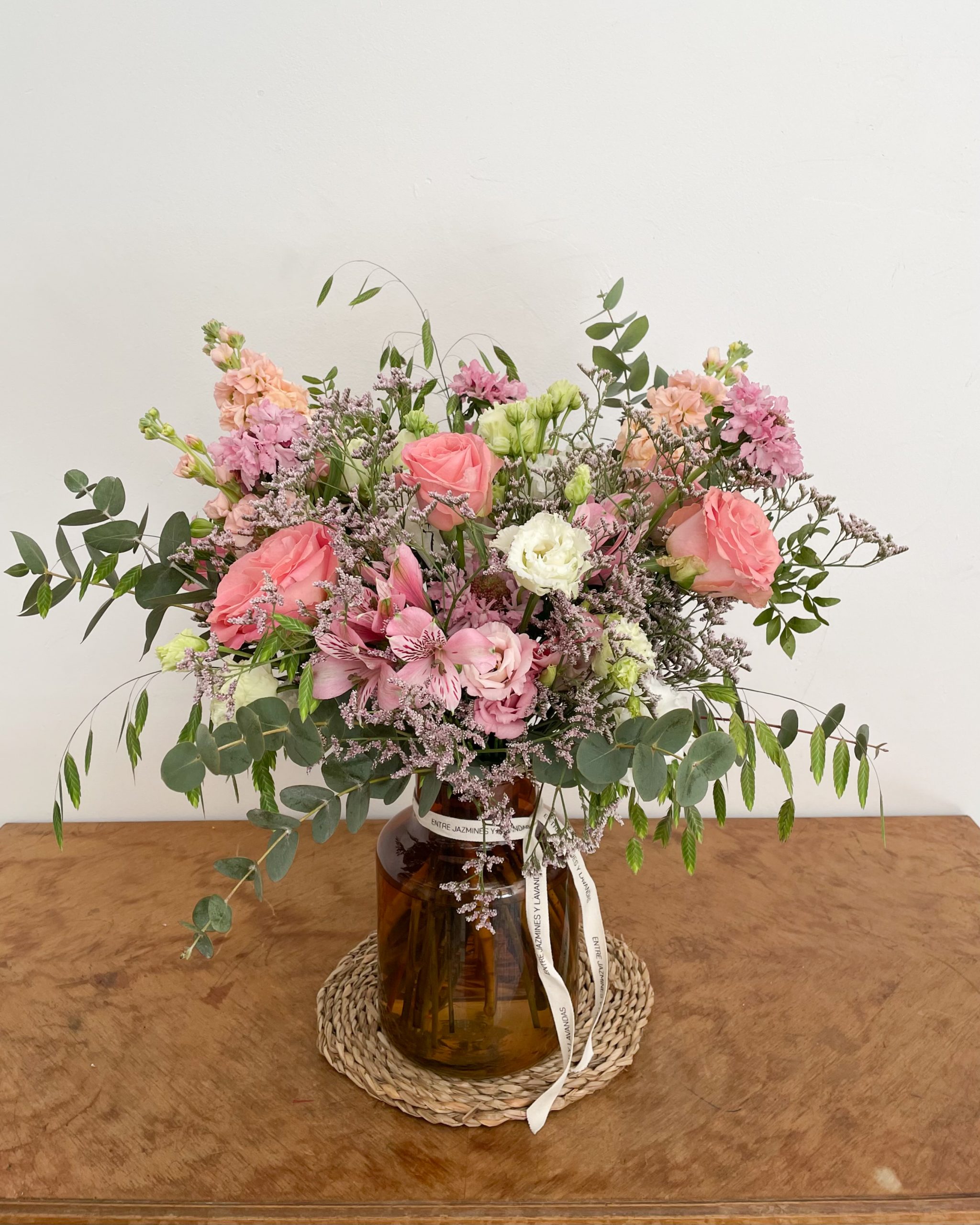 Las variedades florales dependerán de las disponibles en ese día ya que trabajamos con flor de temporada, pero nos aseguraremos de que sean de los tonos perfectos.