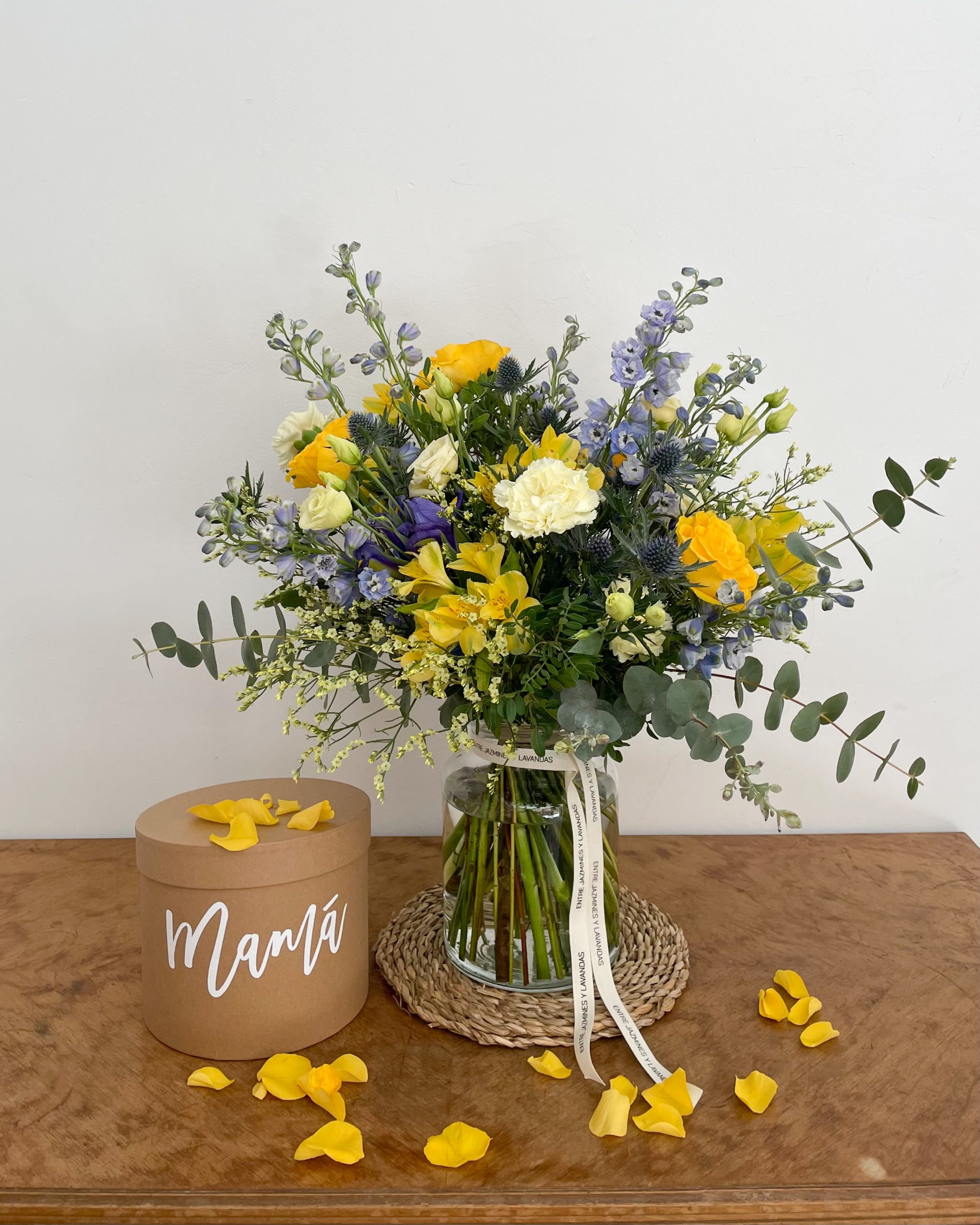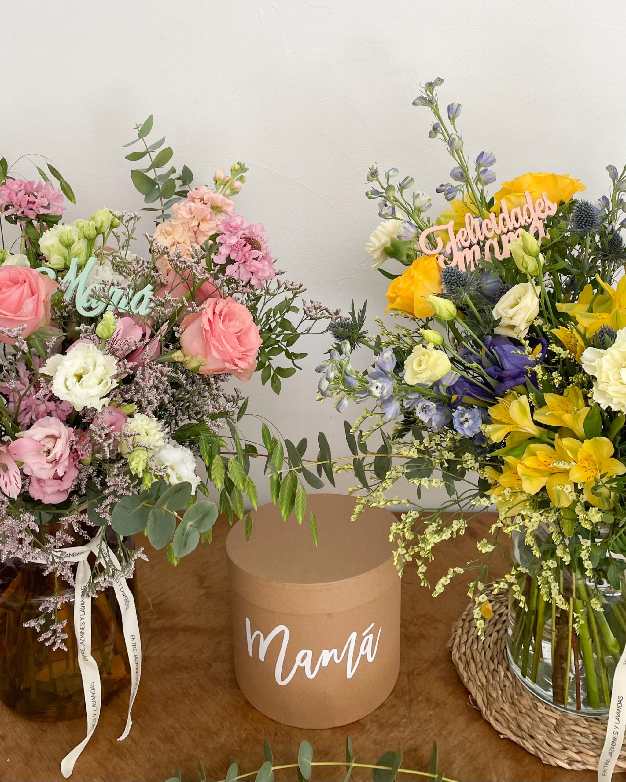 El ramo del día de la madre de la foto es el de tamaño grande, se envía sin jarrón, si quieres puedes añadir uno a tu pedido.